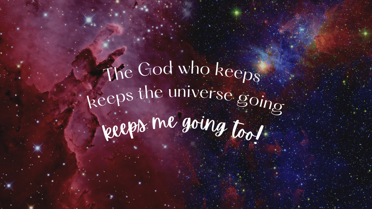 THE GOD WHO KEEPS THE UNIVERSE GOING , KEEPS ME GOING TOO!