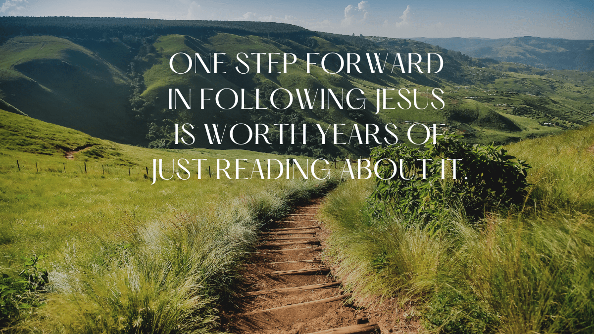 ONE STEP FORWARD IN FOLLOWING JESUS IS WORTH YEARS OF JUST READING ABOUT IT
